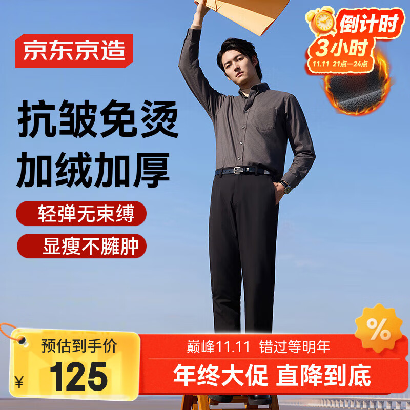 包邮 京东京造【加绒加厚】休闲裤男西裤子男士服装秋冬易打理西装裤 黑色2XL